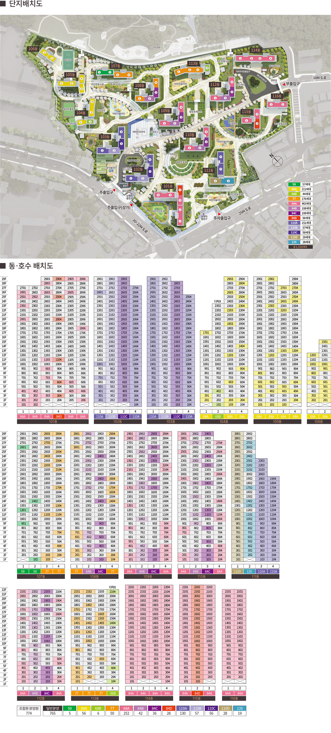 ※ 상기 동 · 호수배치도는 제작 및 인쇄과정상 오탈자 혹은 오류가 있을 수 있으므로 자세한 사항은 견본주택으로 문 의하시기 바랍니다.