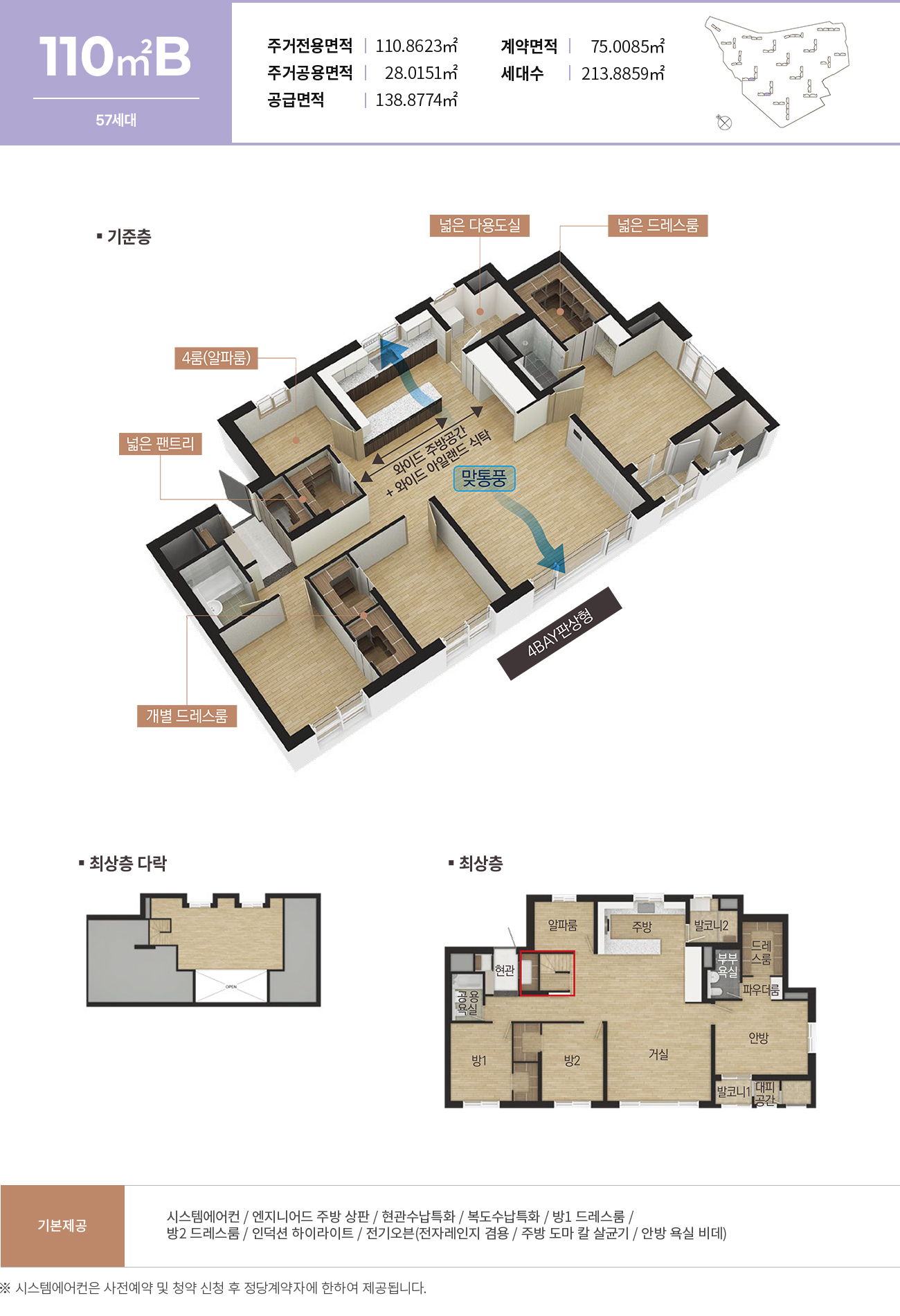 ※ 상기 평면도, 실내투시도, 마감사양 등은 소비자의 이해를 돕기 위한 것으로 실제 시공 시 다소 변경될 수 있니습다.