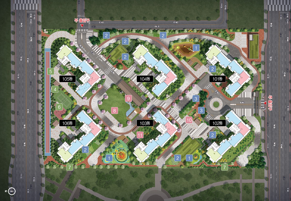 ❾ 파크웨이 다양한 가로수를 감상하며 단지를 순환할 수 있는 산책로를 조성합니다