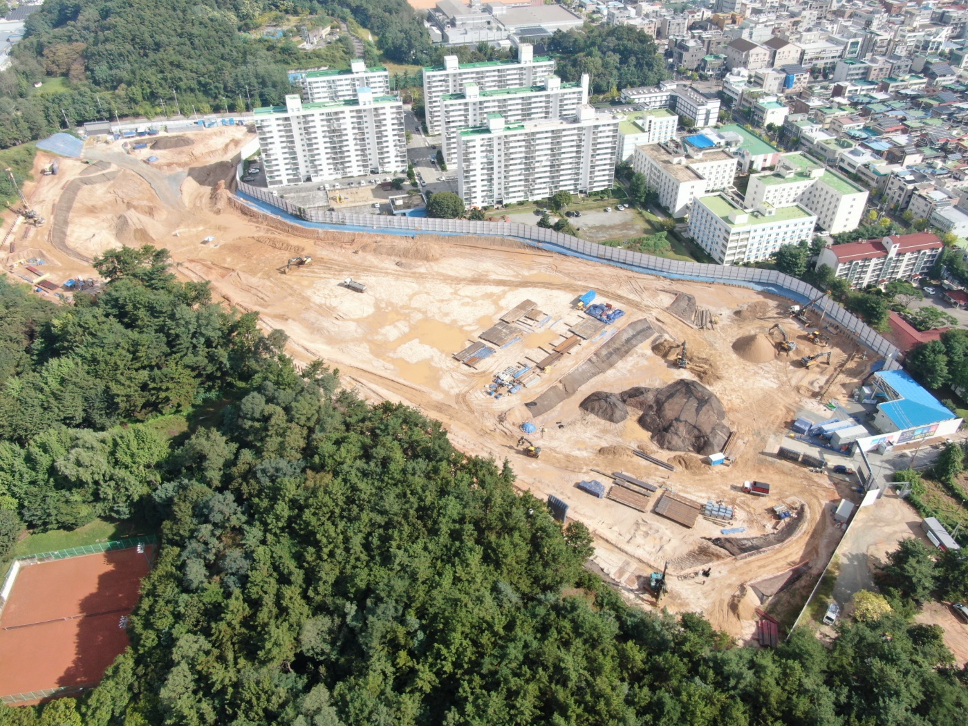- 토공사 : L형옹벽 시공 및 조경석쌓기 / 102~7동 경계석 설치, 비상차도 콘크리트 포장 / 102,3,4동 주변 오,우수관로 및 원형수로관 설치 / 102동 주변 인공지반 배수설치 및 토사반입, 옹벽 되메우기