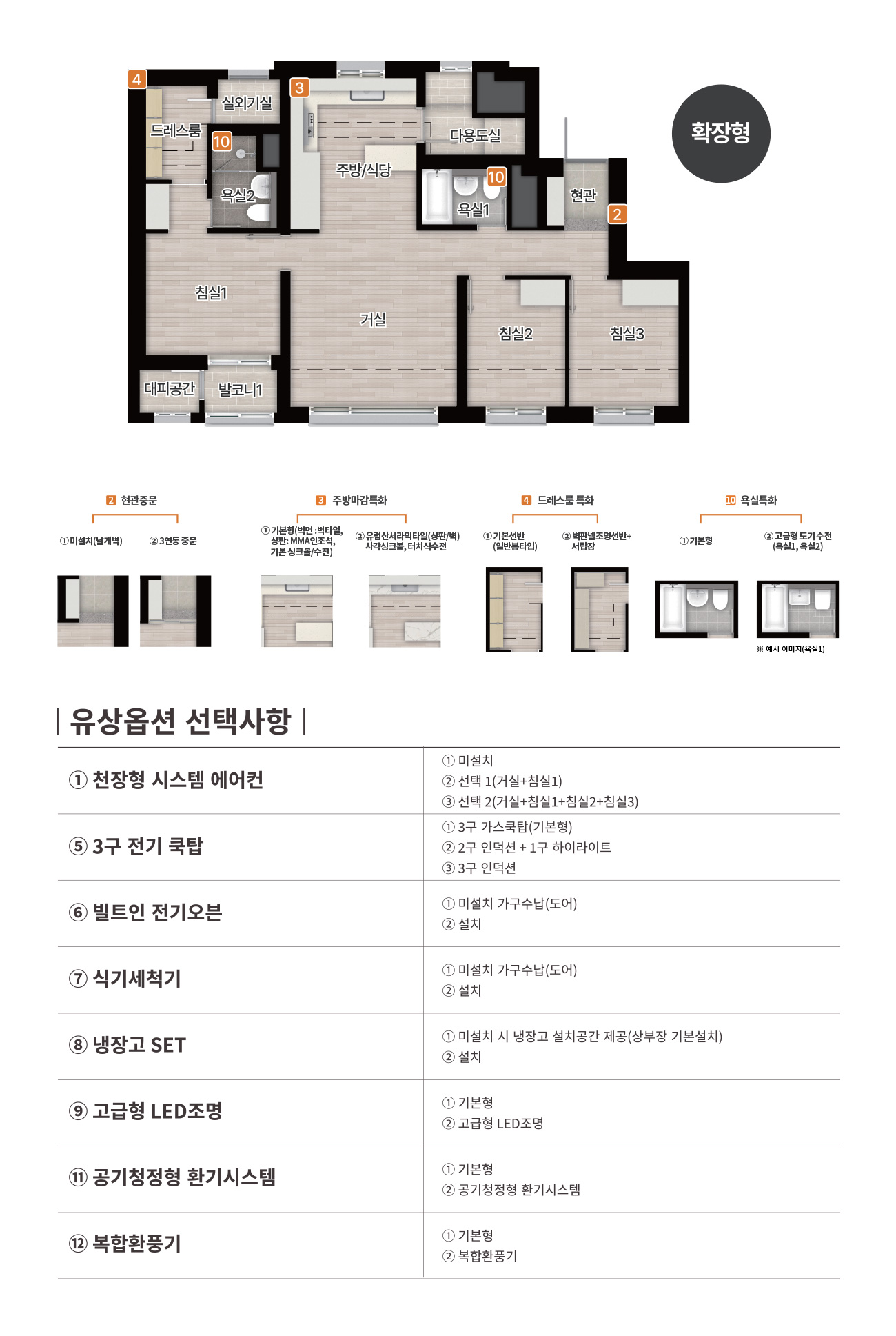 ※ 발코니 미확장 시 추가선택 품목(유상옵션) 선택이 불가합니다.