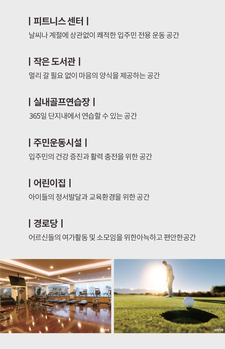 상기 커뮤니티 이미지는 소비자의 이해를 돕기 위한 것으로 시설물의 위치, 규모, 명칭 등은 시공시 변경될 수 있습니다.